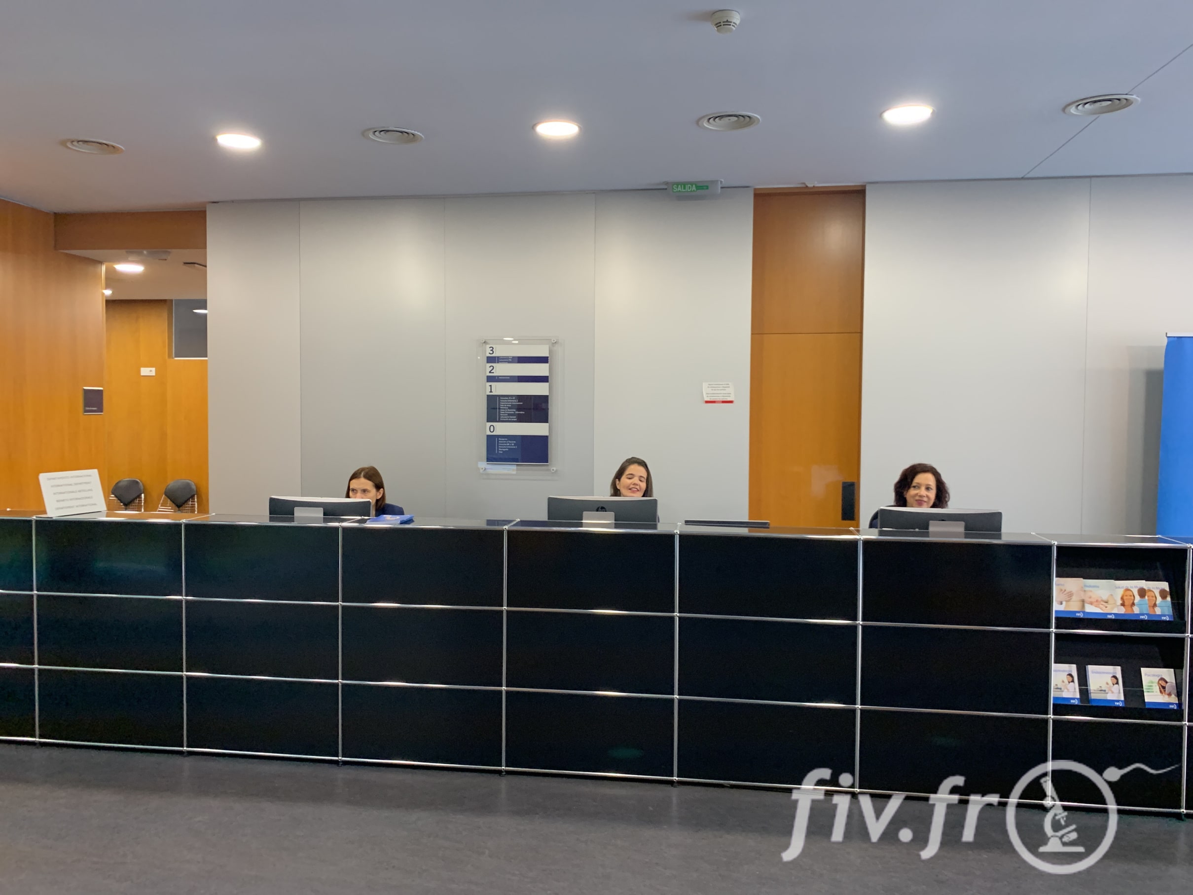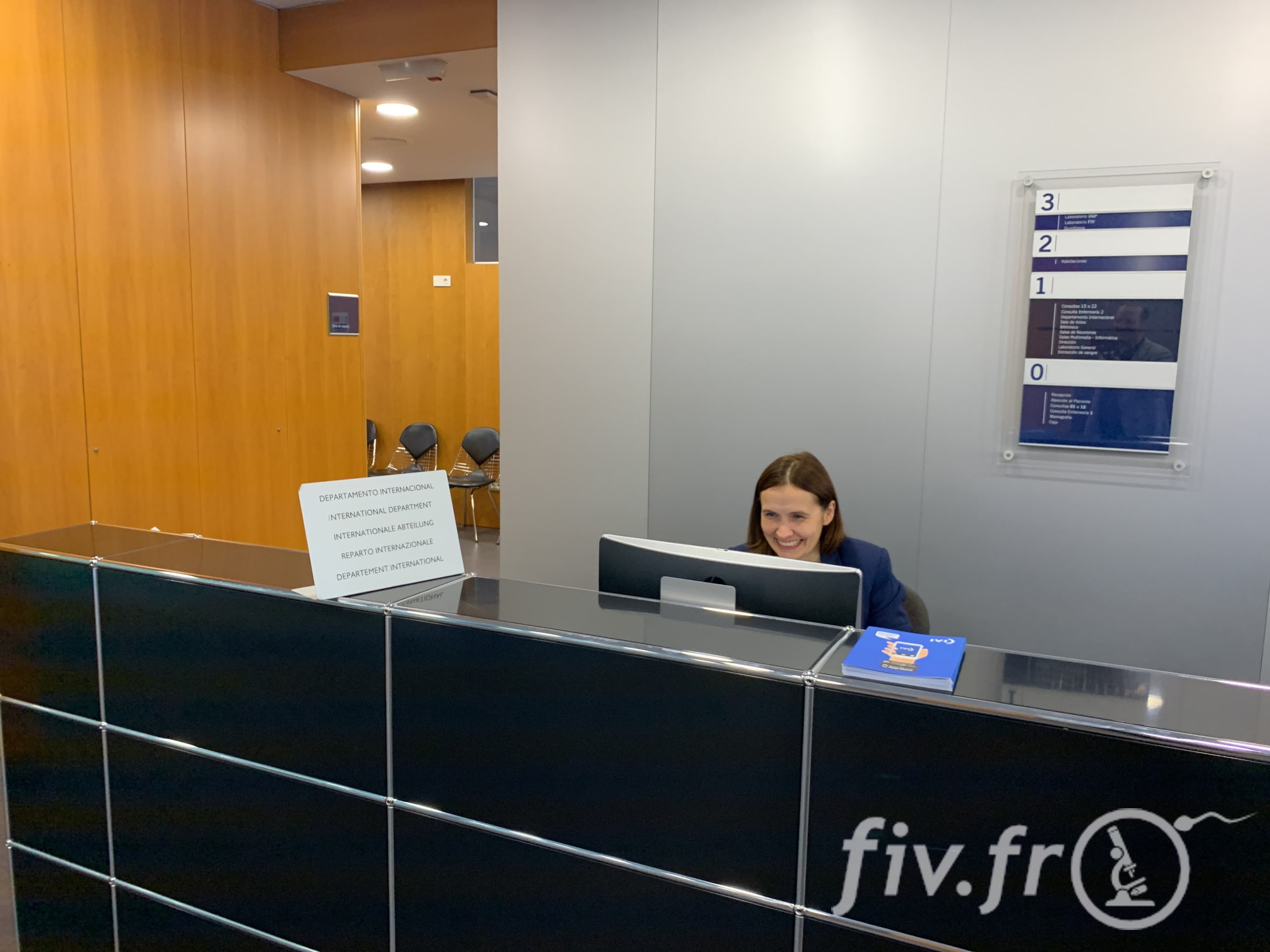 R : Le département international est composé de 20 personnes, dont chacune est compétente dans au moins une langue étrangère. Parmi elles, 9 parlent français, en plus de la secrétaire chargée des devis. Il n’y a donc pas besoin de parler espagnol pour être suivi dans cette clinique IVI. Quoi que la patiente ait à faire dans la clinique, elle peut être accompagnée par quelqu’un qui parle français.