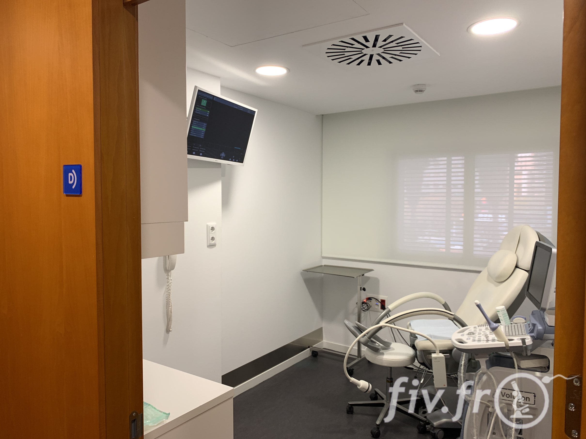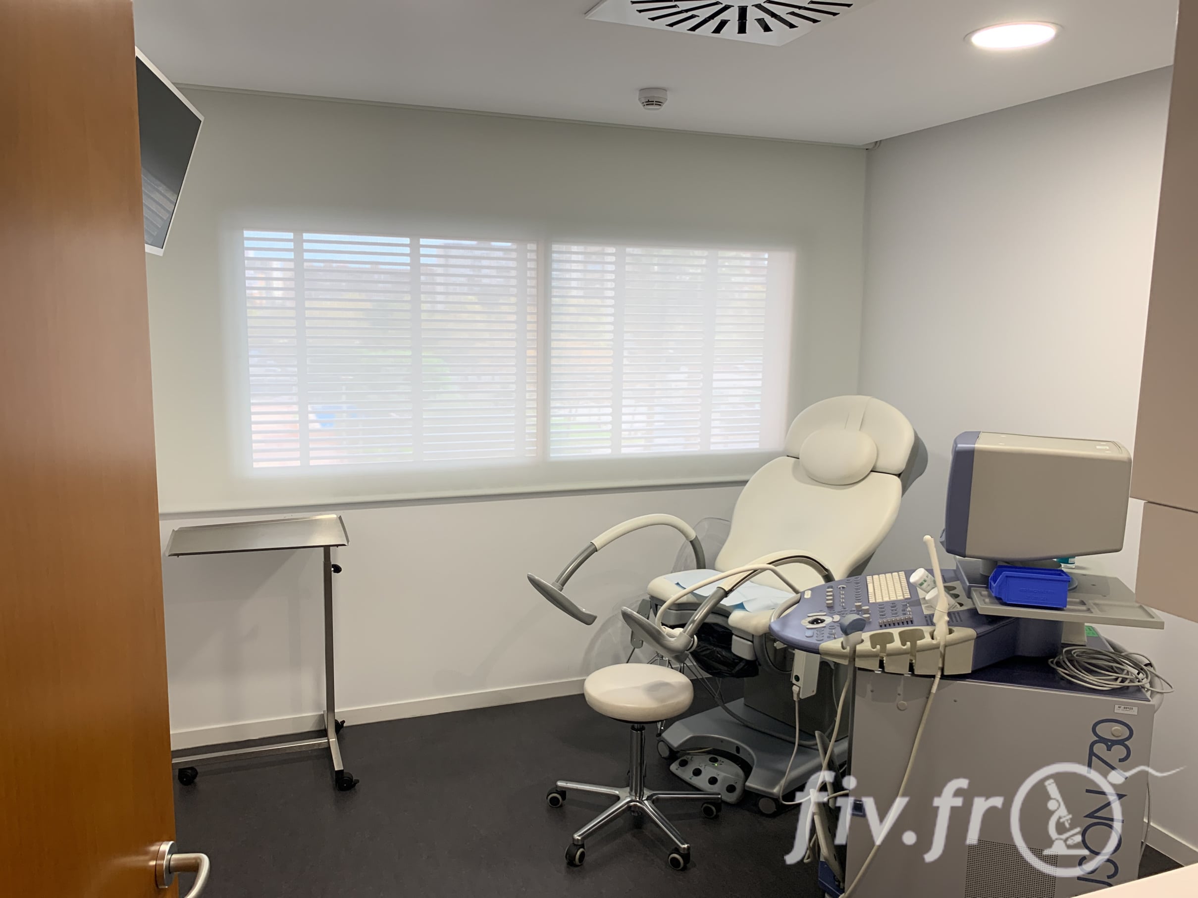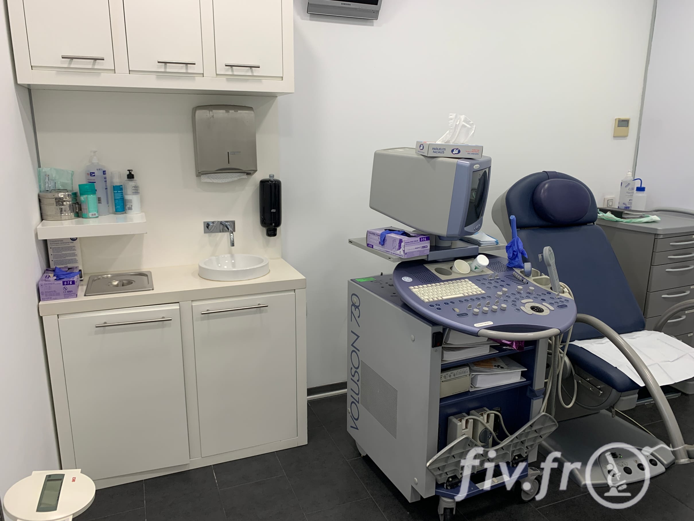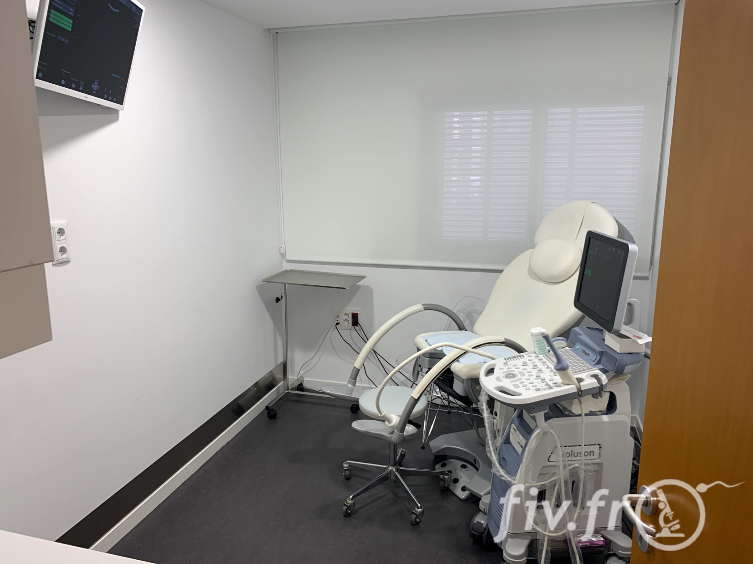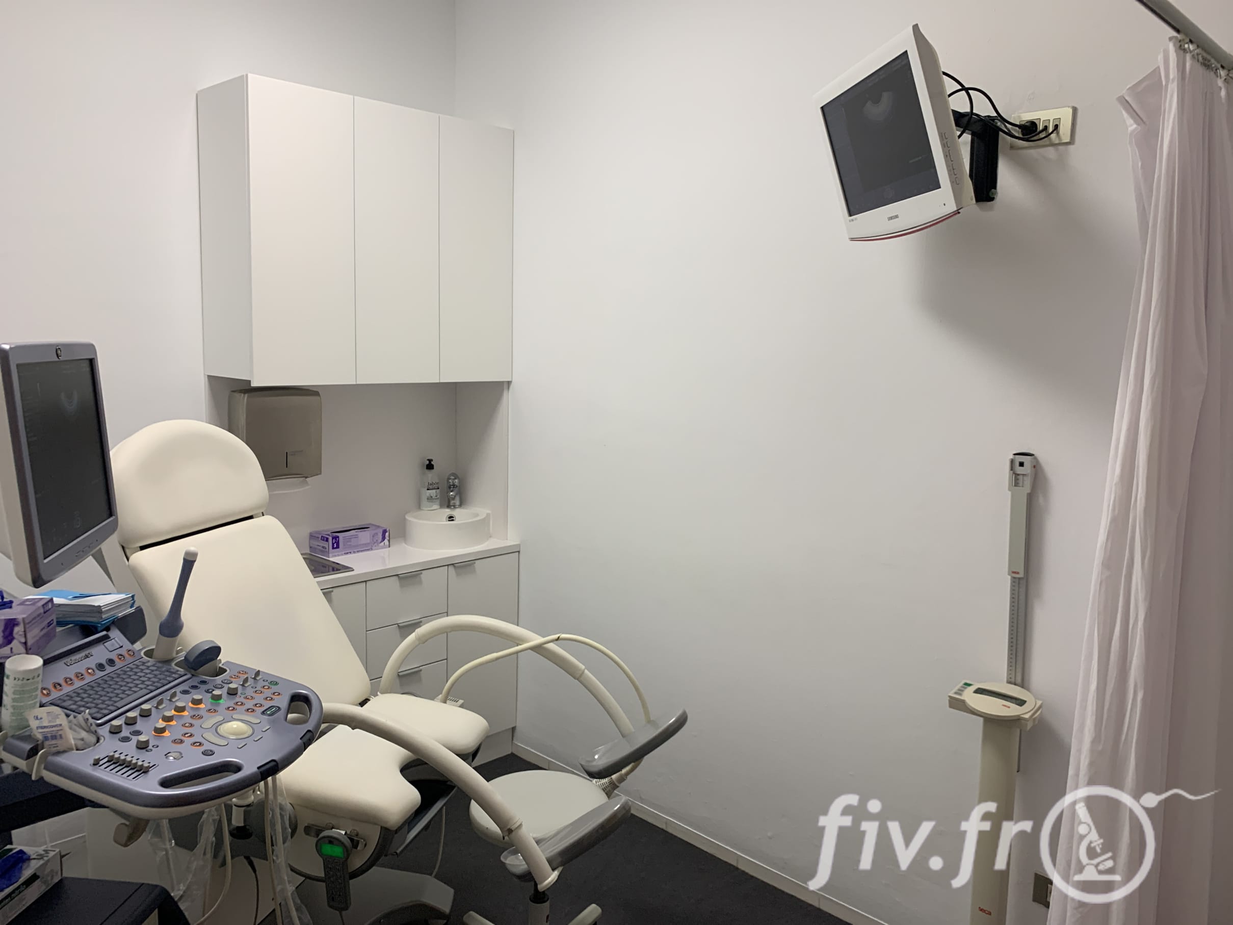 Il y a de nombreux bureaux de consultation, chaque bureau est composé d’une seconde pièce où sont faites les échographies de contrôle et autres explorations nécessaires.