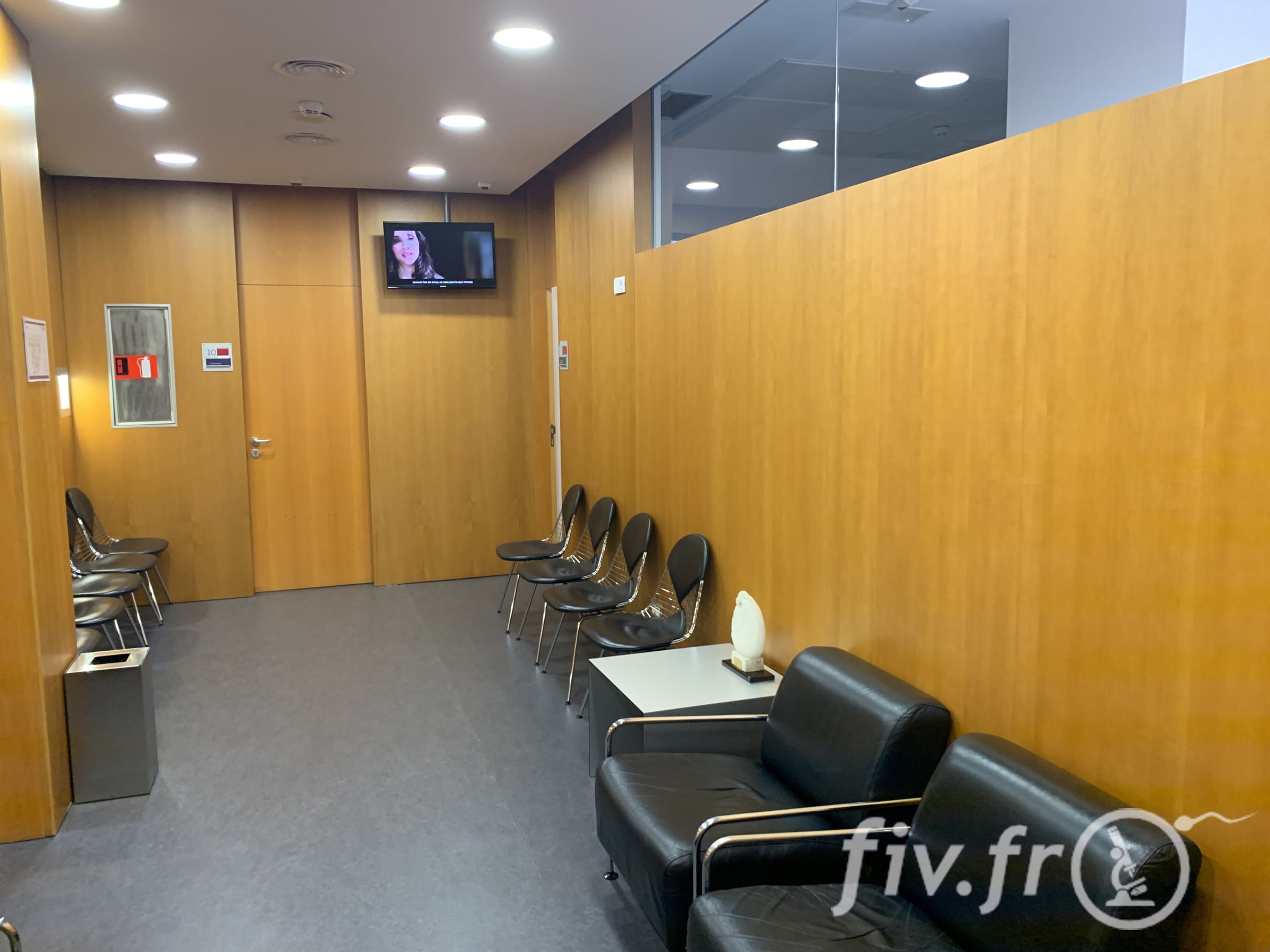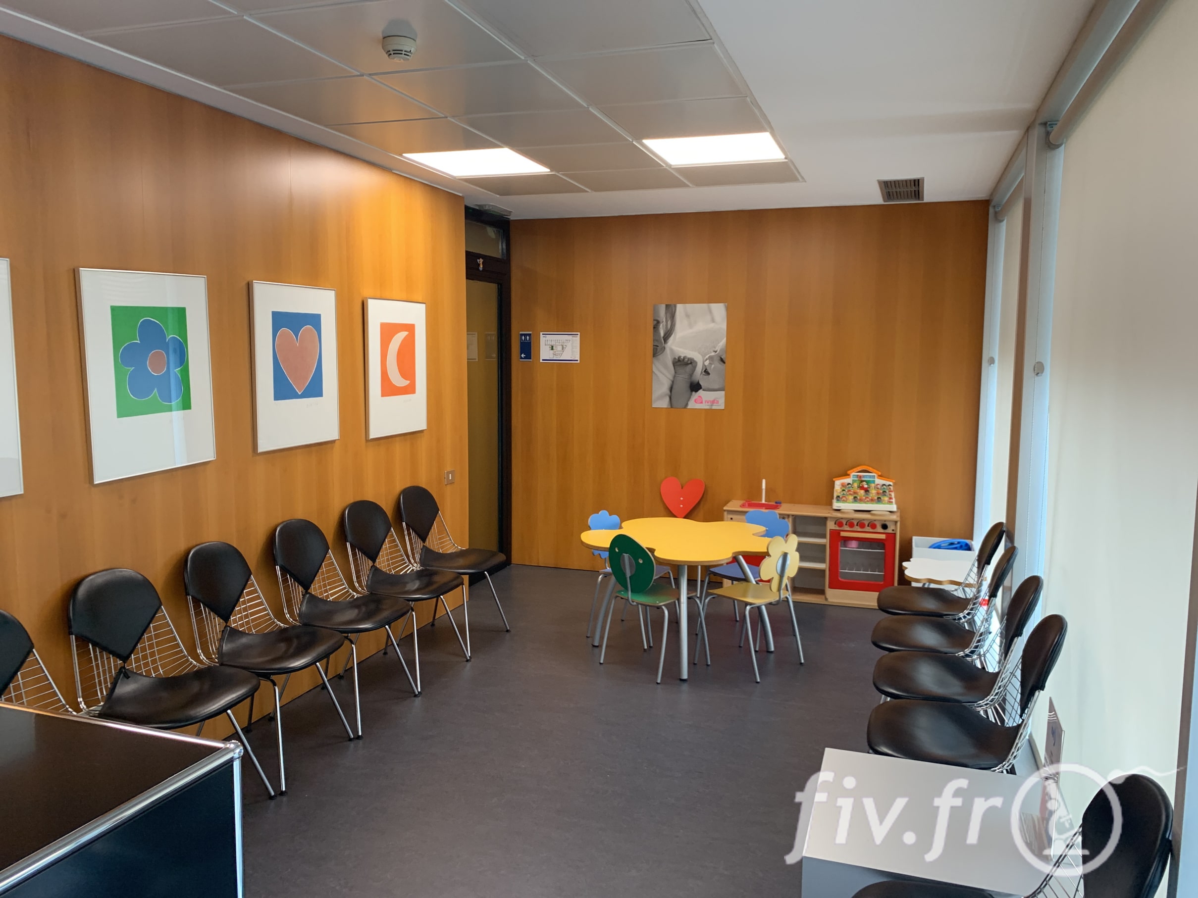 Nous accédons maintenant au 1er étage de la clinique ou se trouvent les bureaux de consultation, les salles de transfert, la salle de prise de sang, les salles de recueil du sperme. Notez d’ailleurs et c’est assez rare pour le signaler qu’une salle d’attente est dédiée aux familles, avec des jeux dédiés.