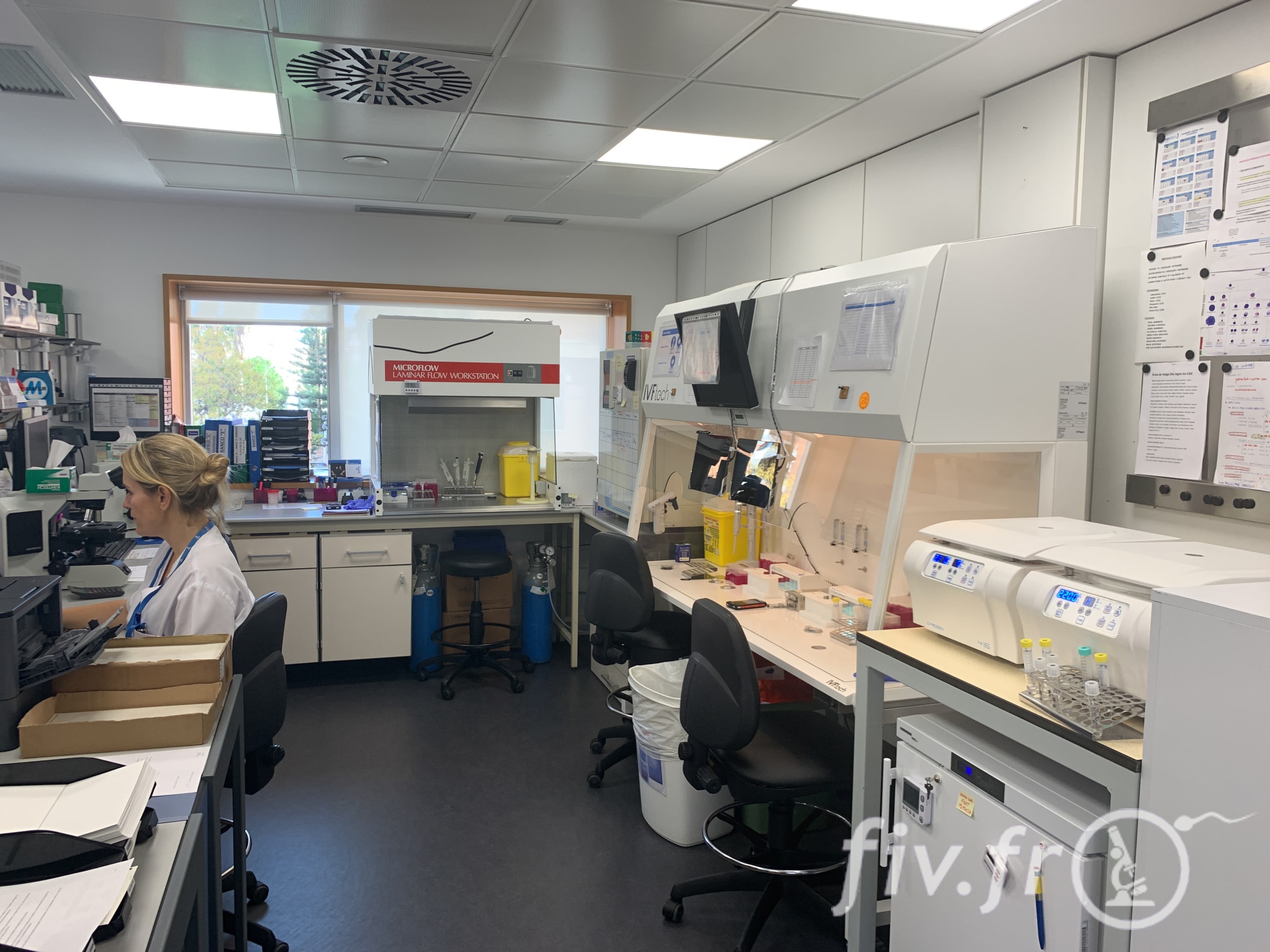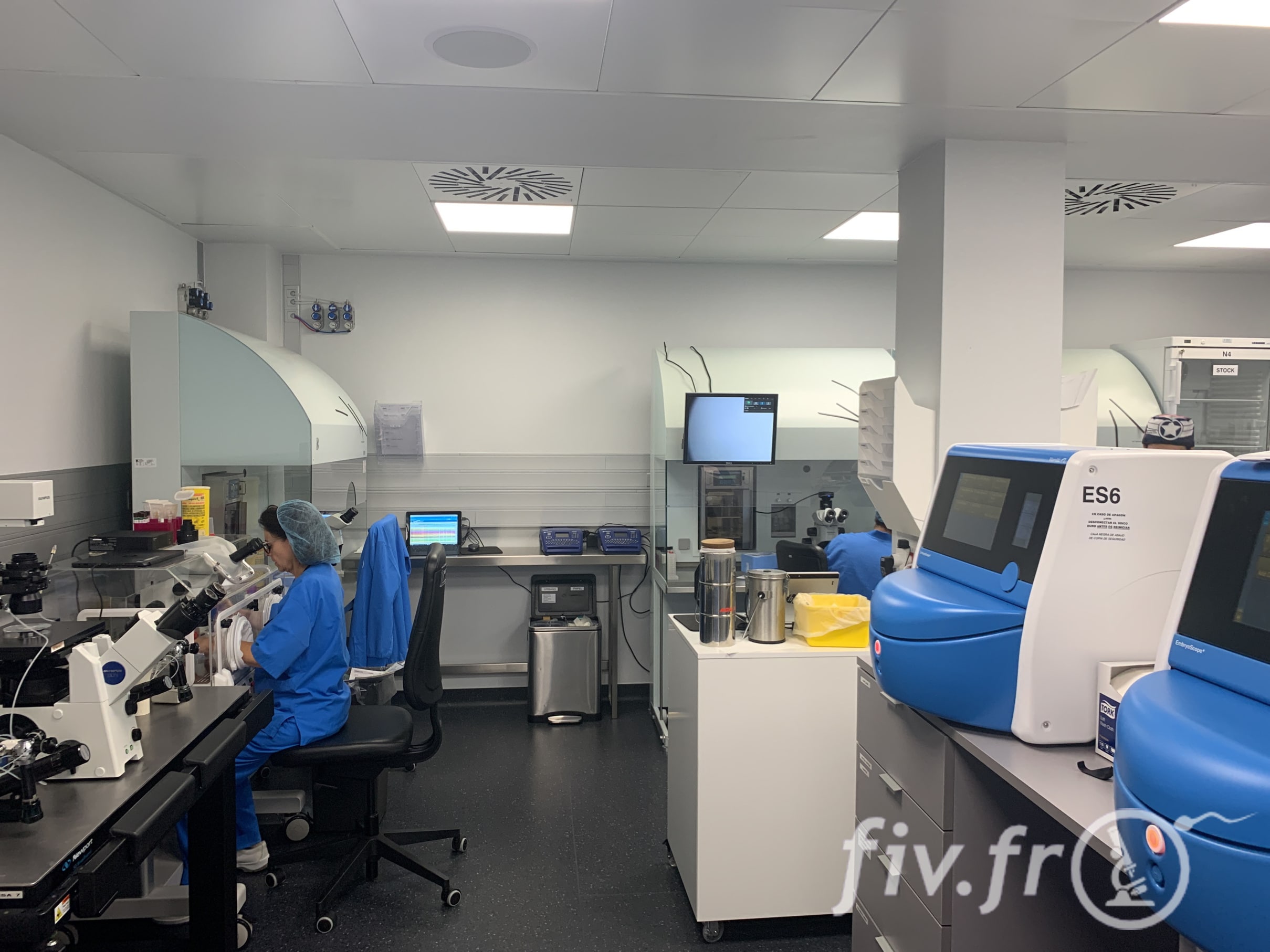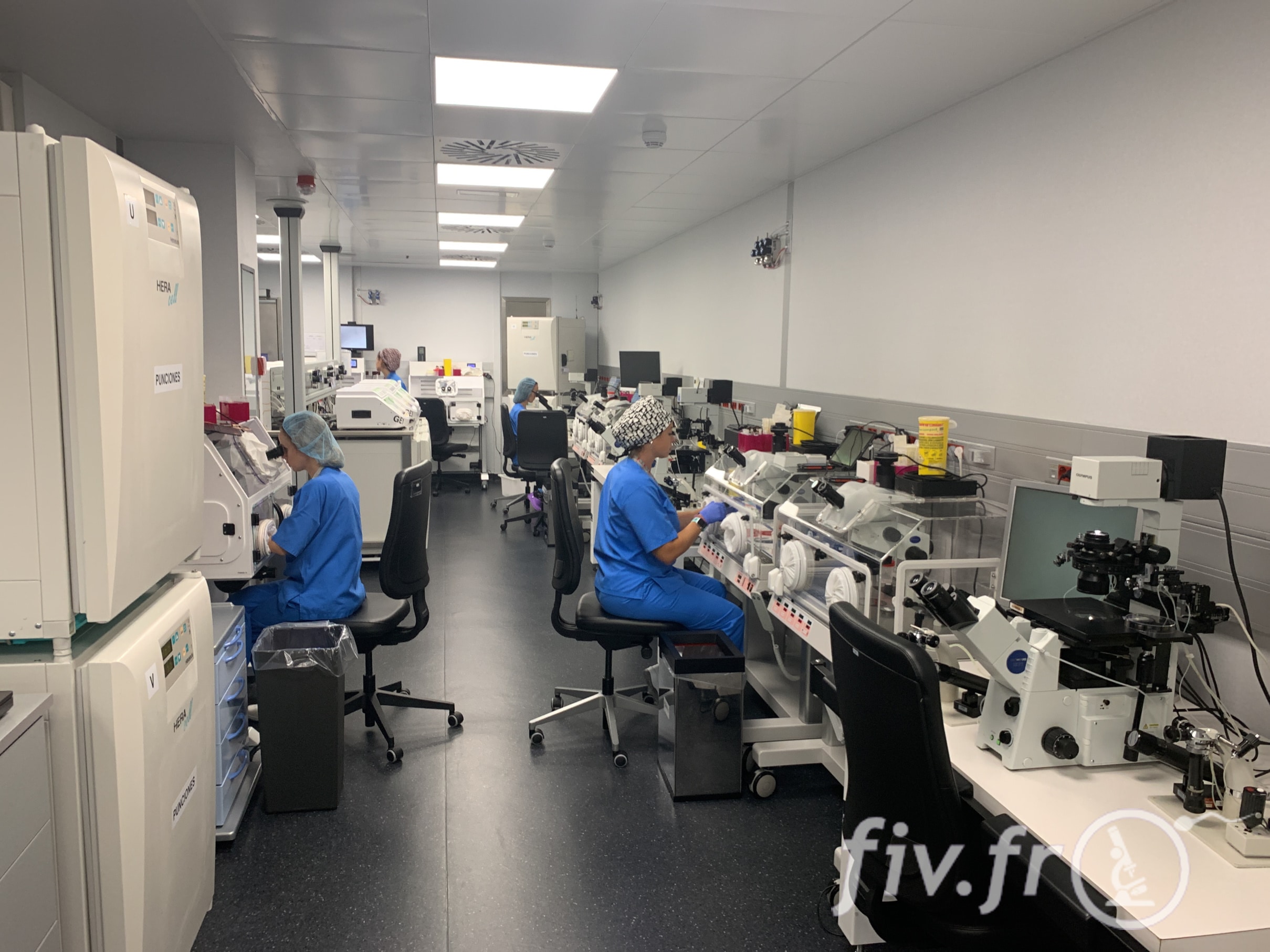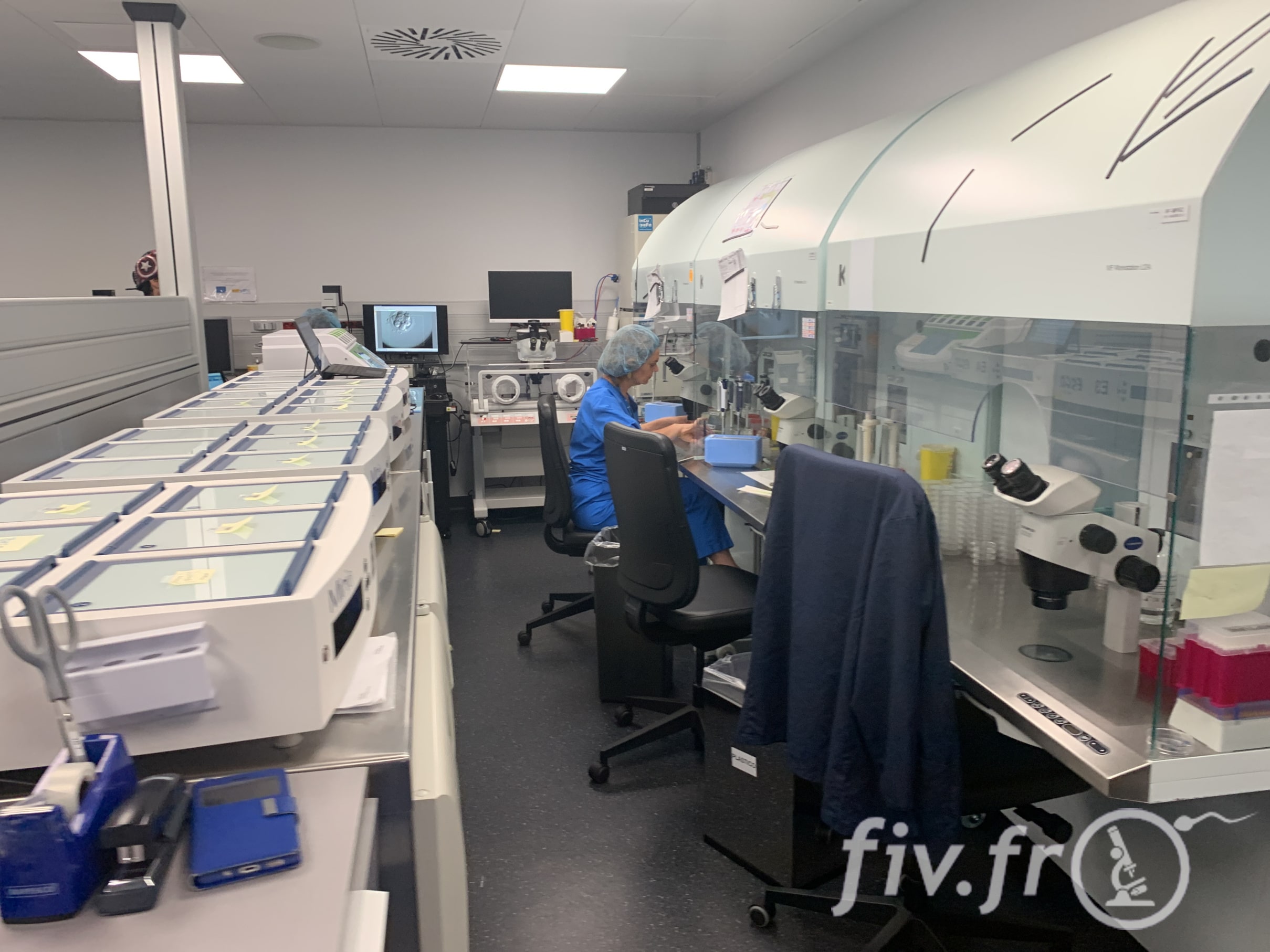 La laboratoire est organisé en zones spécialisées ou sont faites les FIV ICSI, le tri des ovocytes, les vitrifications, etc