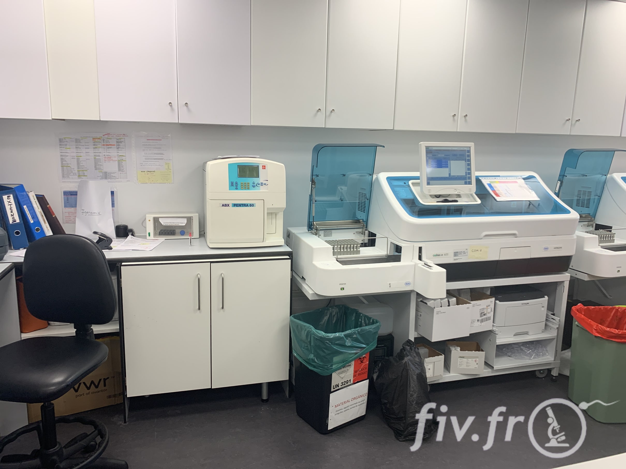 L’andrologie, c’est la discipline médicale qui touche tout ce qui est en relation avec l’homme. Sur les photos que vous voyez une partie dédiée au sperme et une autre au sang. Les sérologies, analyses d’hormones et autres analyses sanguines sont faites sur place, ce qui est assez rare et permet une efficacité et rapidité accrus. Nous vous invitons d’ailleurs à lire en bas de cette page, l’interview que nous accordée la directrice de ce laboratoire , le Docteur Rocío Rivera.