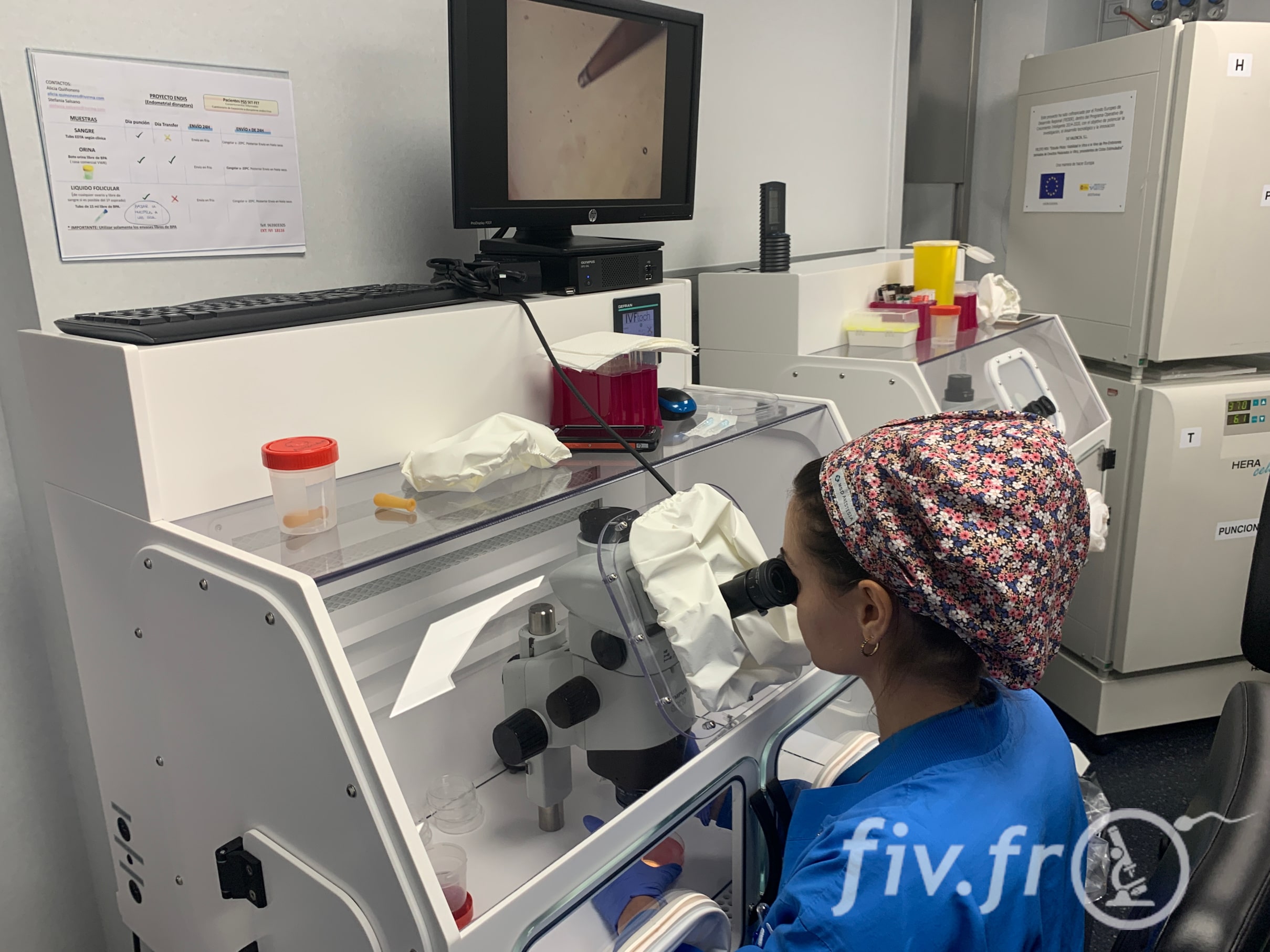 C’est dans ce laboratoire qu’est préparé le sperme qui sera utilisé pour les FIV classiques et ICSI.