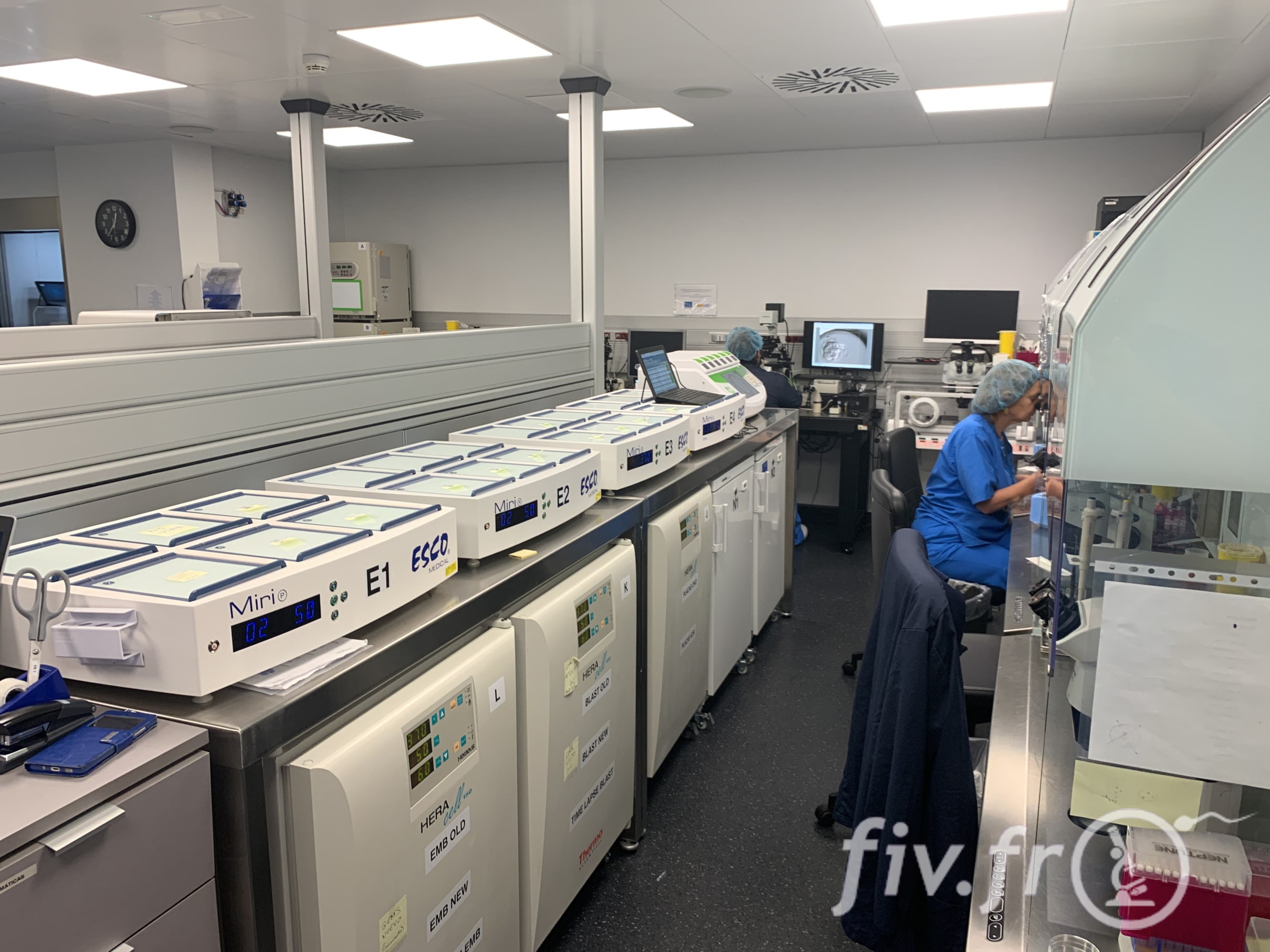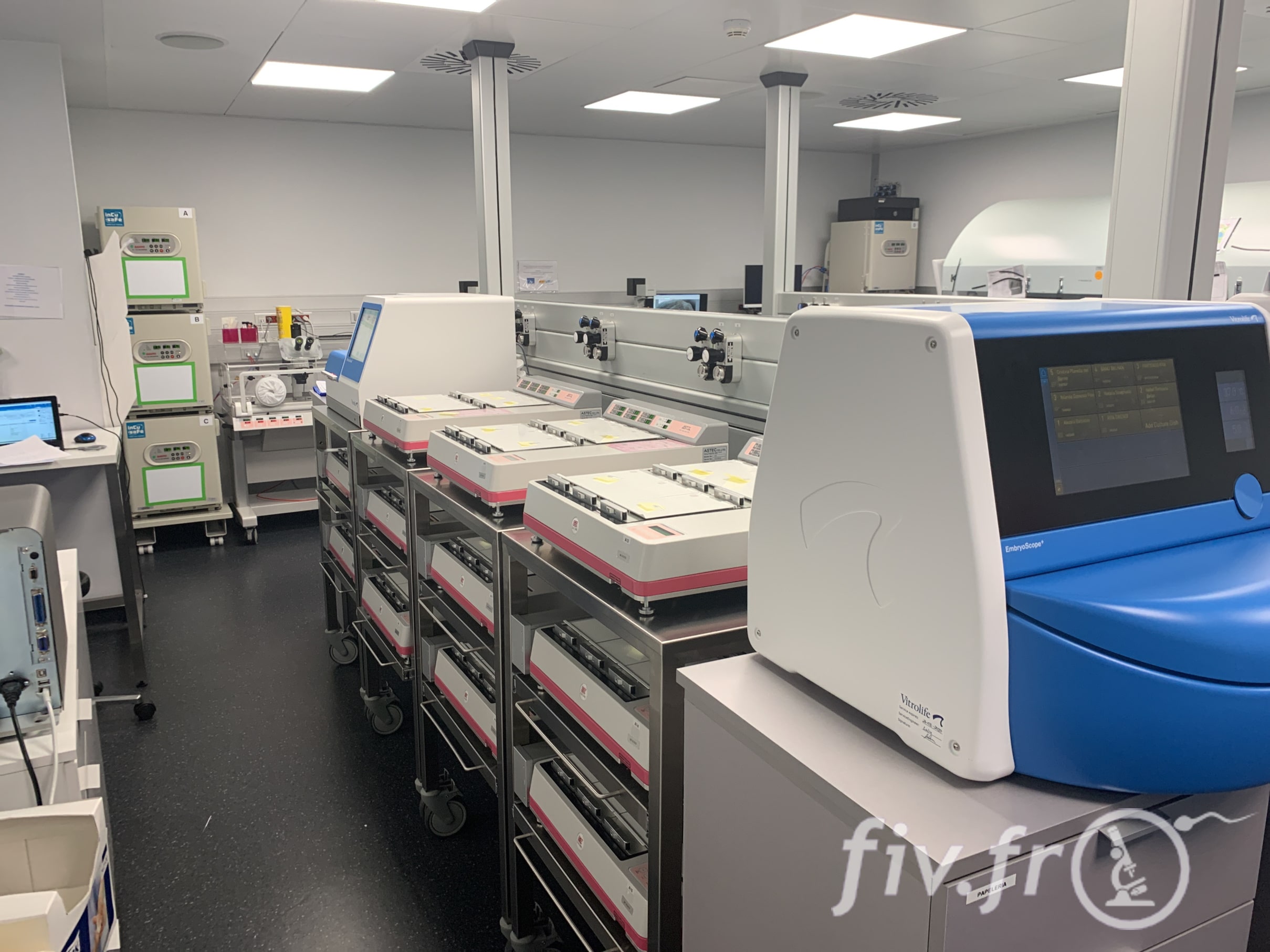 Comme vous pouvez le voir, il y a énormément d’incubateurs (machine qui garde les embryons au chaud), dont de nombreux incubateurs time-lapse (Geri, Embryoscope, etc…).